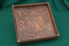 I picked up this bellows at a thrift store and thought it looked interesting. It has a brass Oxford coat of arms on the front, and a nozzle with "ELPEC" New England engraved on it. The finish is peeling and the green leather has some small holes. It was $5, so I thought we'd pick it up to see if it was anything special.