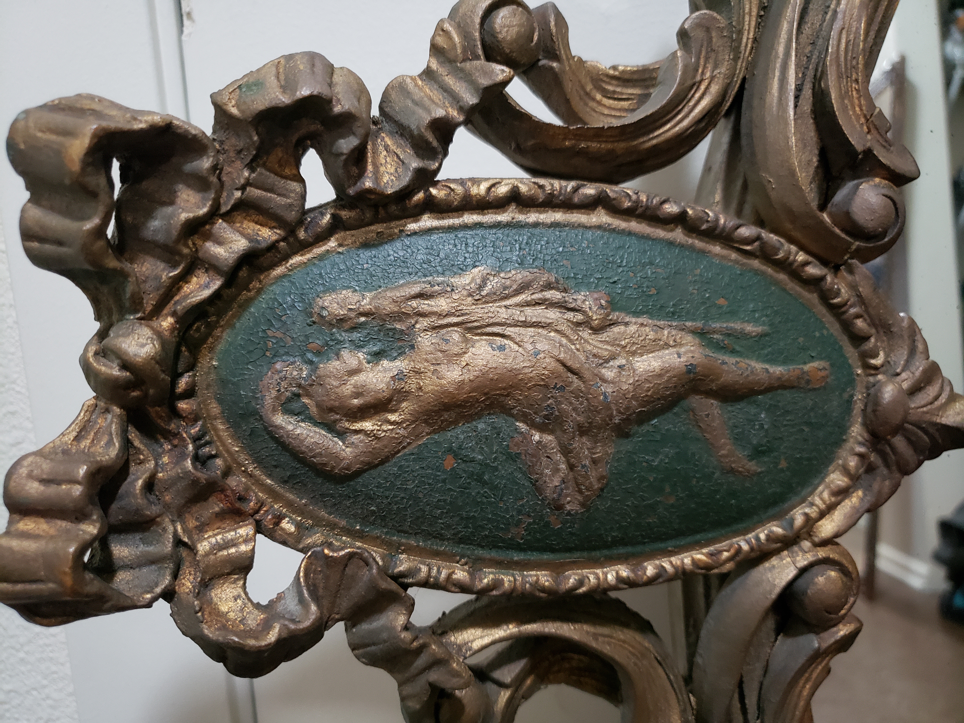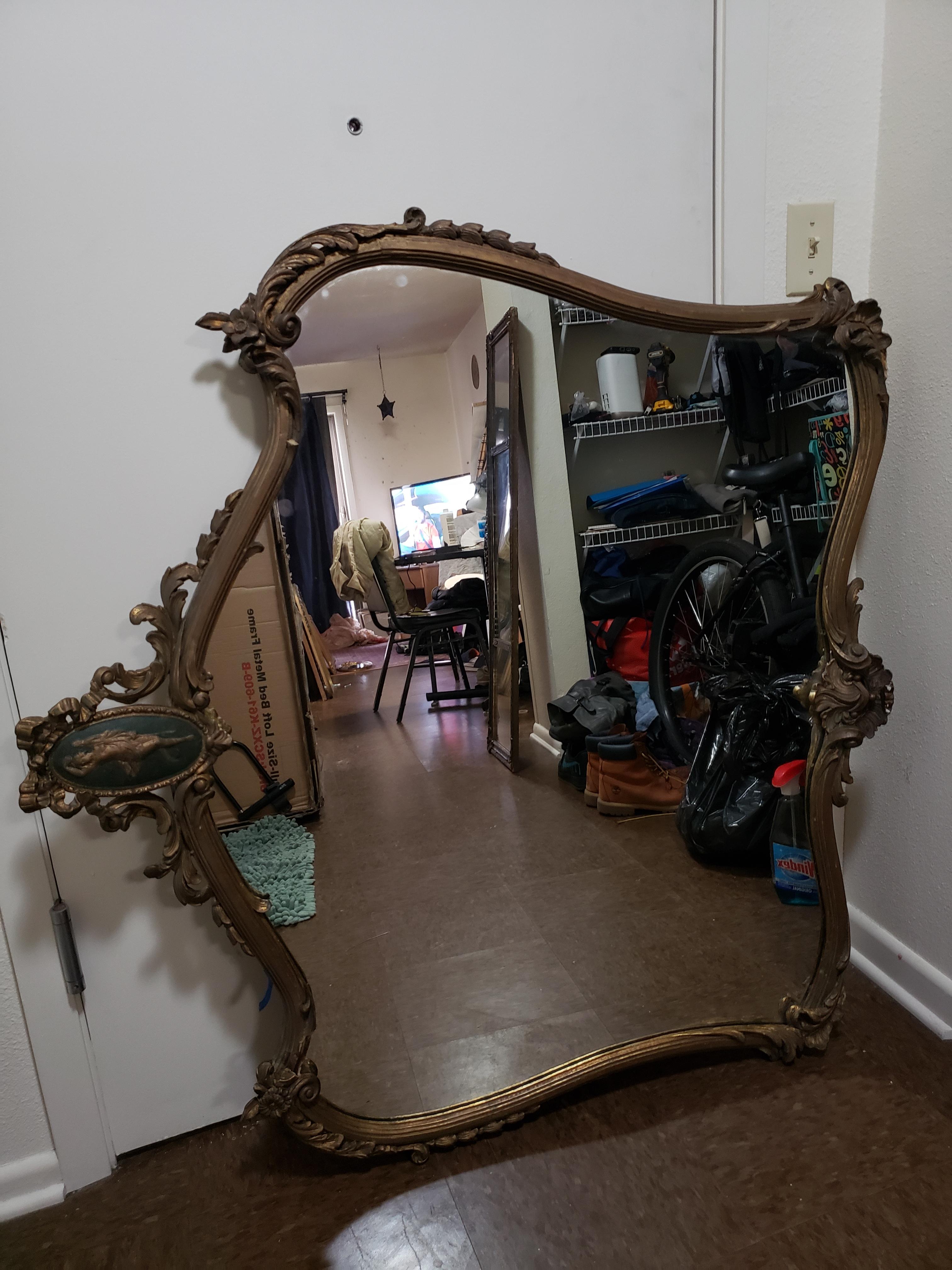 looks to be made from wood and plaster glass mirror is very good shape