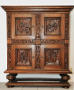Hand-Carved wooden corner cupboard. Previous owner was my sister's grandfather inlaw who owned an antique shop on the Oregon Coast before he passed away. Height of entire piece is 29": Width is 16". Opening of cupboard is about 10". Max depth of cupboard opening is 8". If you have any further questions, please let me know. I'd like to know an approximate value. I intend to sell this piece.