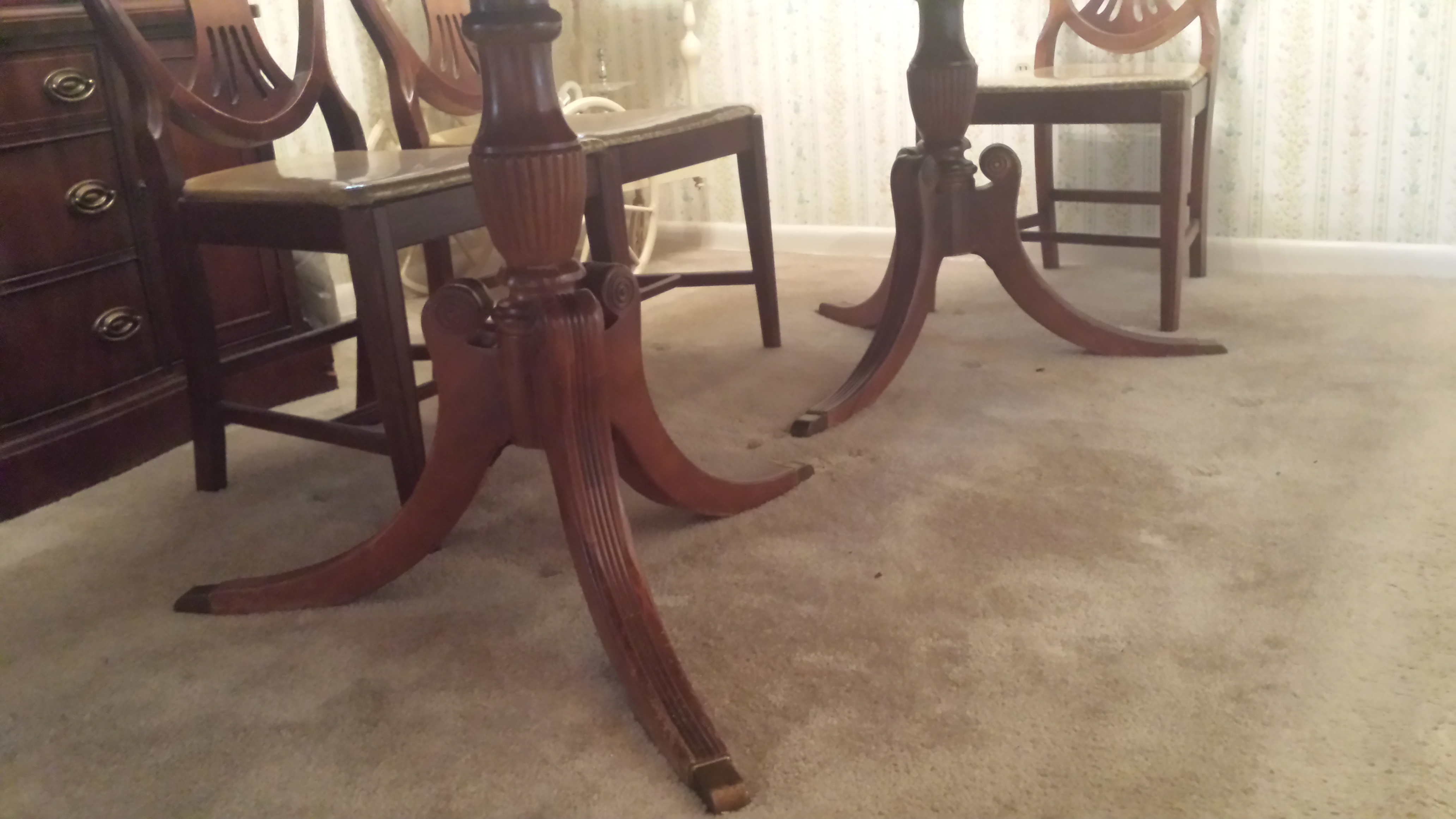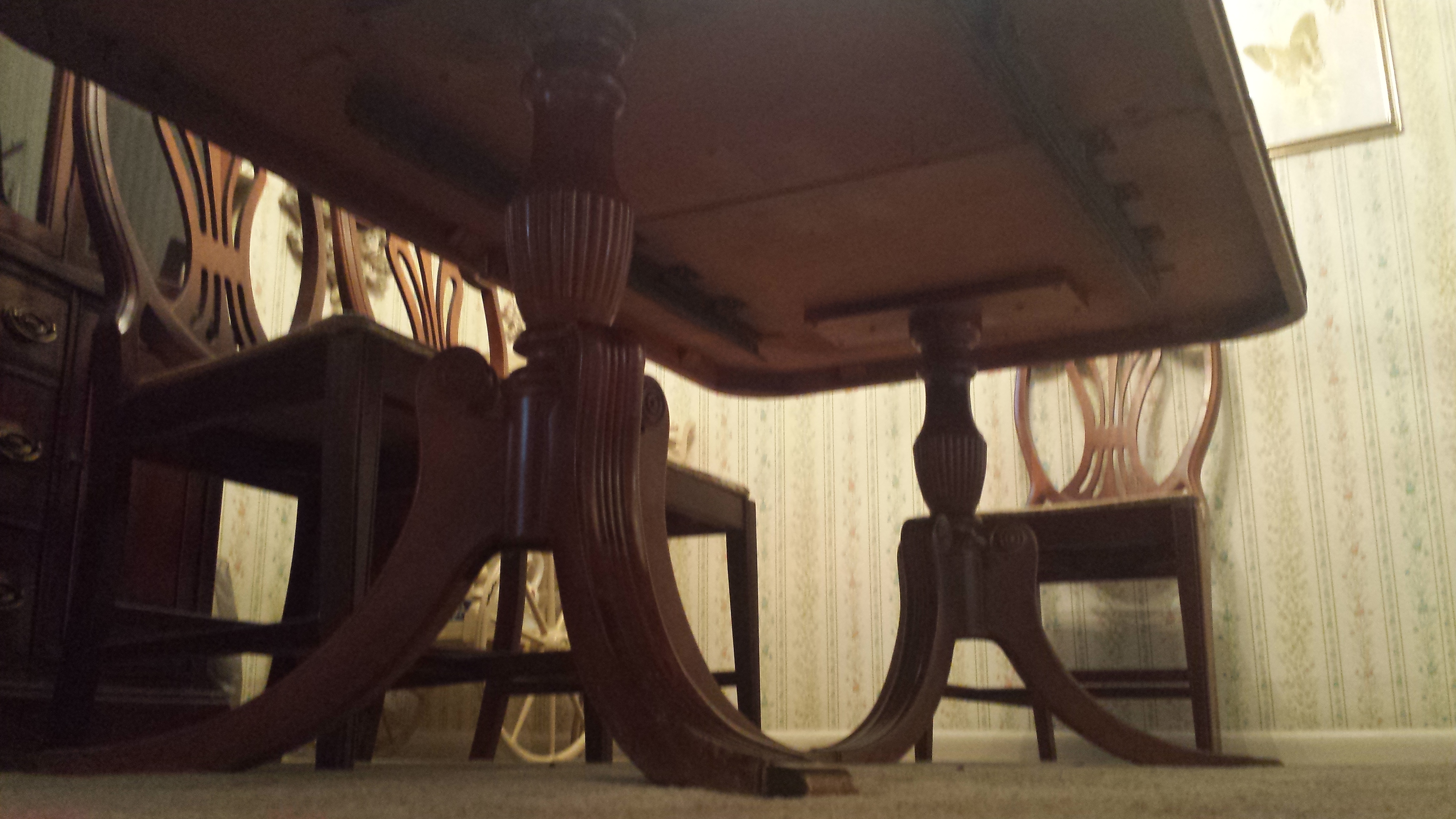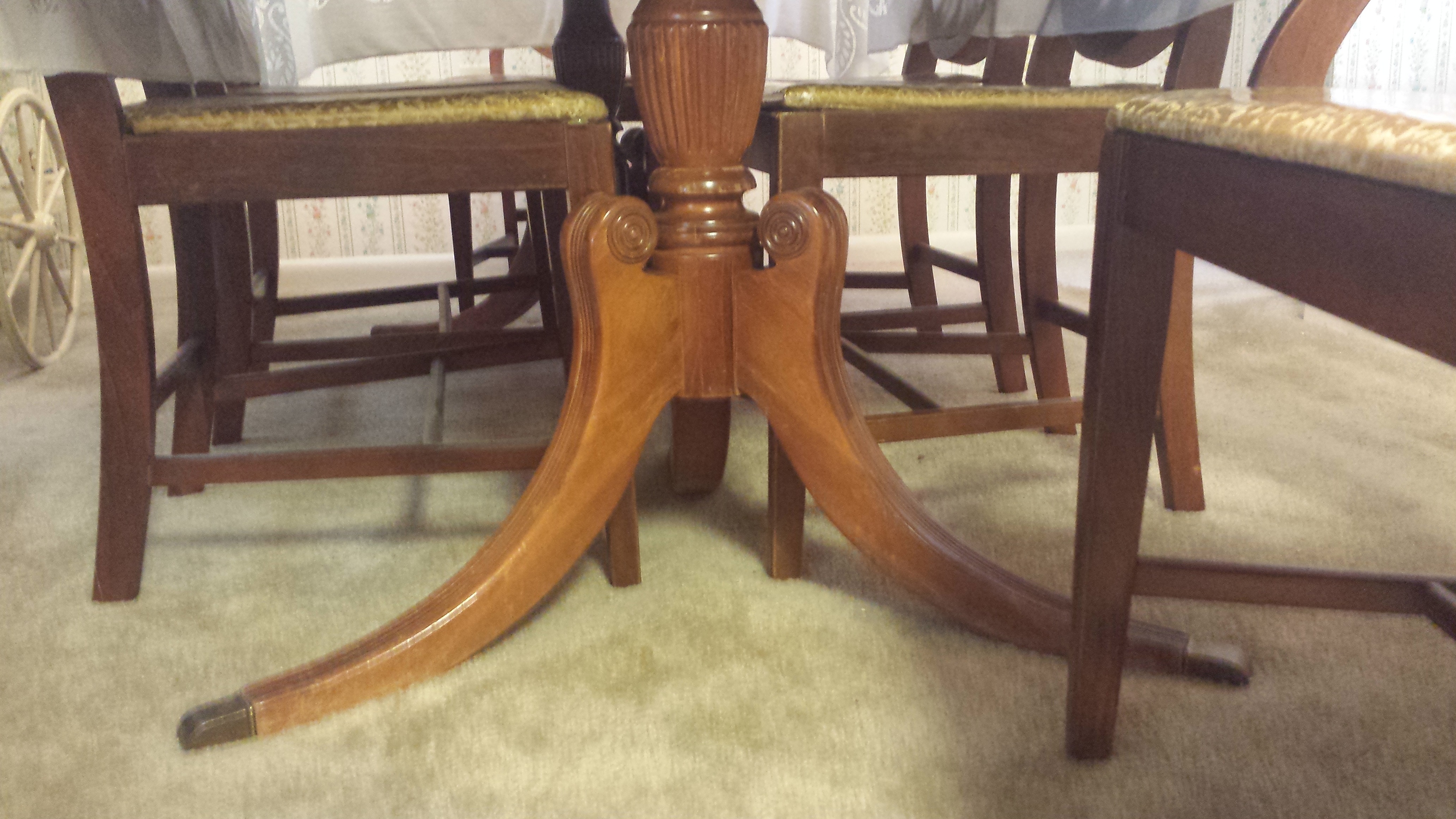 Hi I am interested on what specific set this is? It was my grandmothers. We know it is Duncan Phyfe but I'm struggling to find the exact match online. It is a mahogany table with six chairs. The chairs were originally cream colored but were reupholstered and plastic covered (does that drop the price? Probably. I don't know)