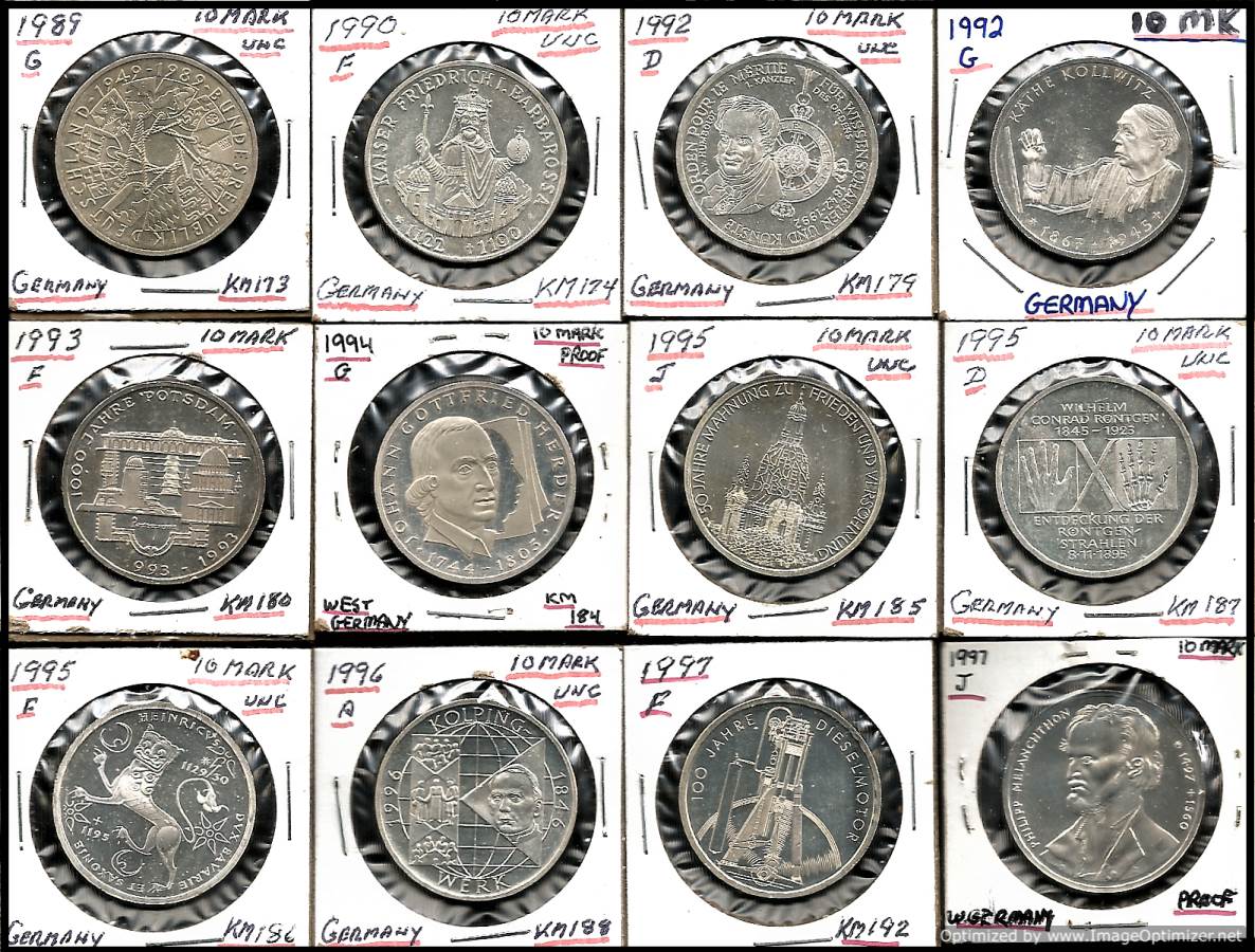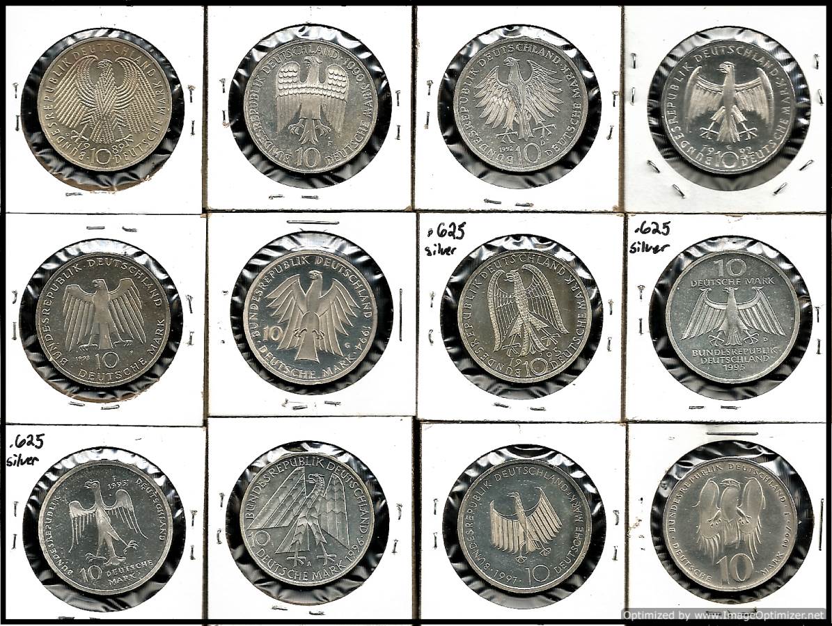 Here we have a lot of 12, Germany-10 Mark Silver coins (.625)