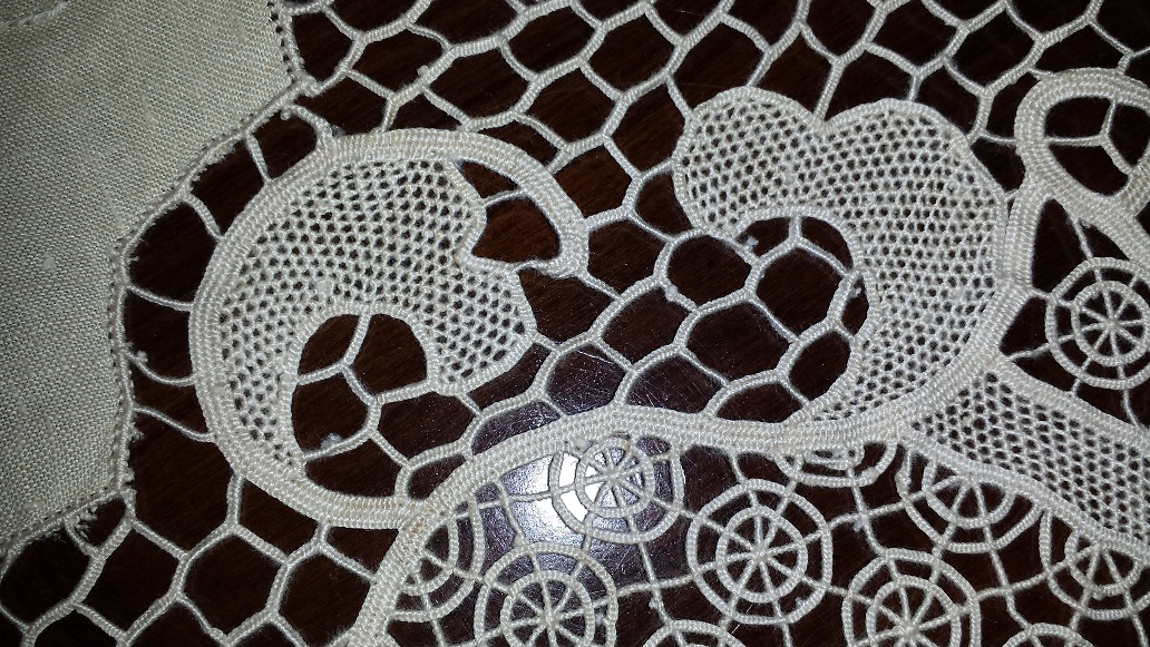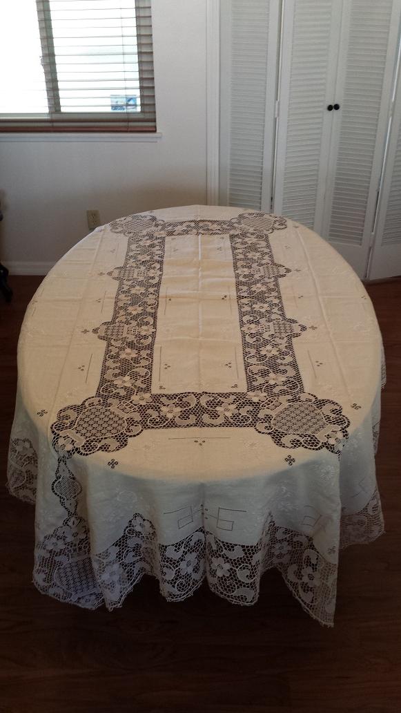 This tablecloth has been handed down through two generations and has never been used. It is in prestine condition. It was made by the Nuns of Florence, Italy circa 1900. It is 103" X 67" and has 12 matching napkins.