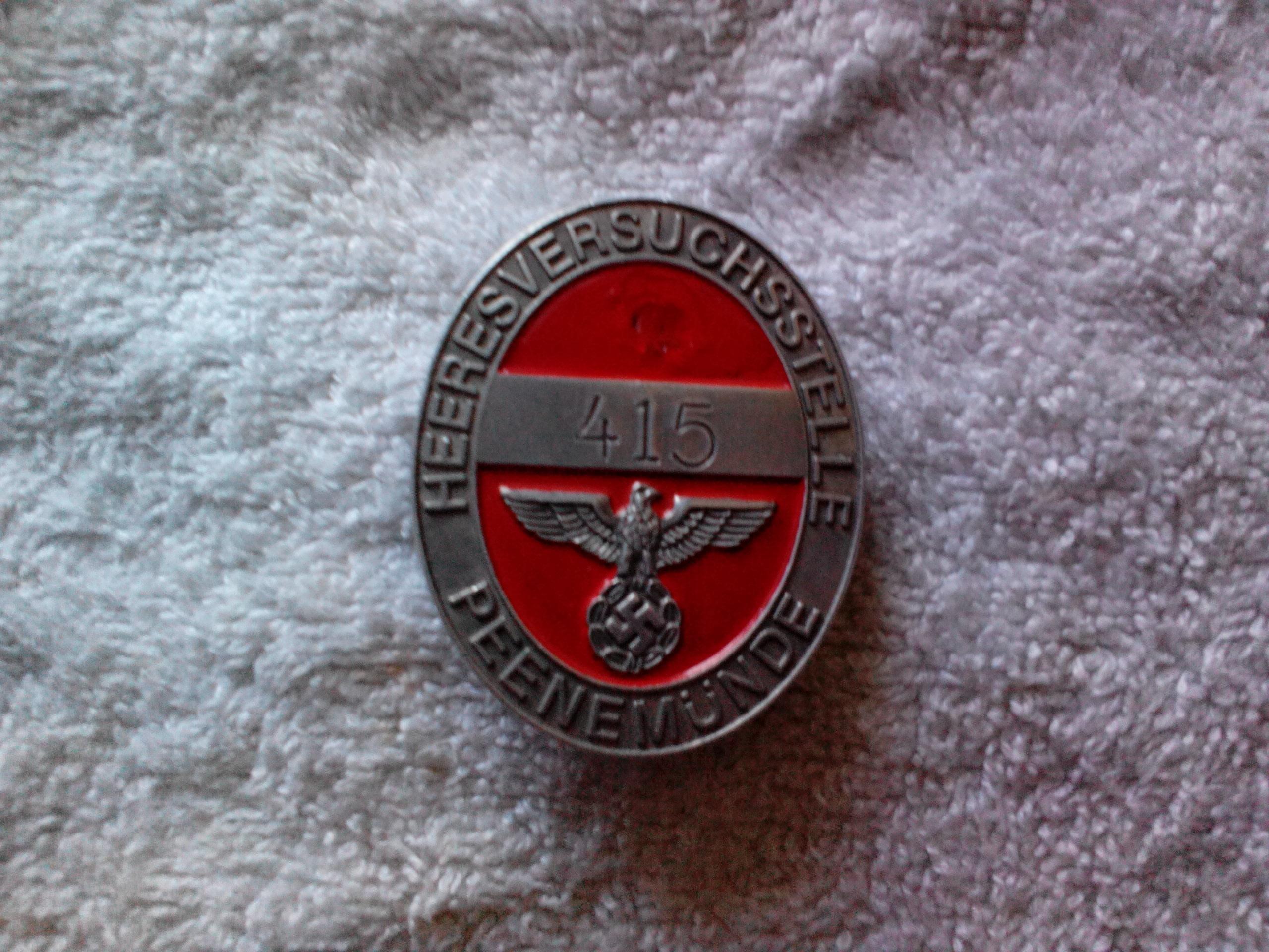 Luftwaffe badge from Peenemunde where the Germans had the rocket program. I got it from my grandfather who was a major in the Luftwaffe and worked on the rocket program i.e. V-1, V-2. I have another one for sale on this site also from Peenemunde but looks different. I've never seen one of these before even after 30 years of collecting so I'm not sure what to ask but will go with the educated guess of $350 o.b.o. but must be a reasonable offer and with all my stuff if not completely satisfied you have a hundred percent money back guarantee. It's about 2" or 2 1\2" long