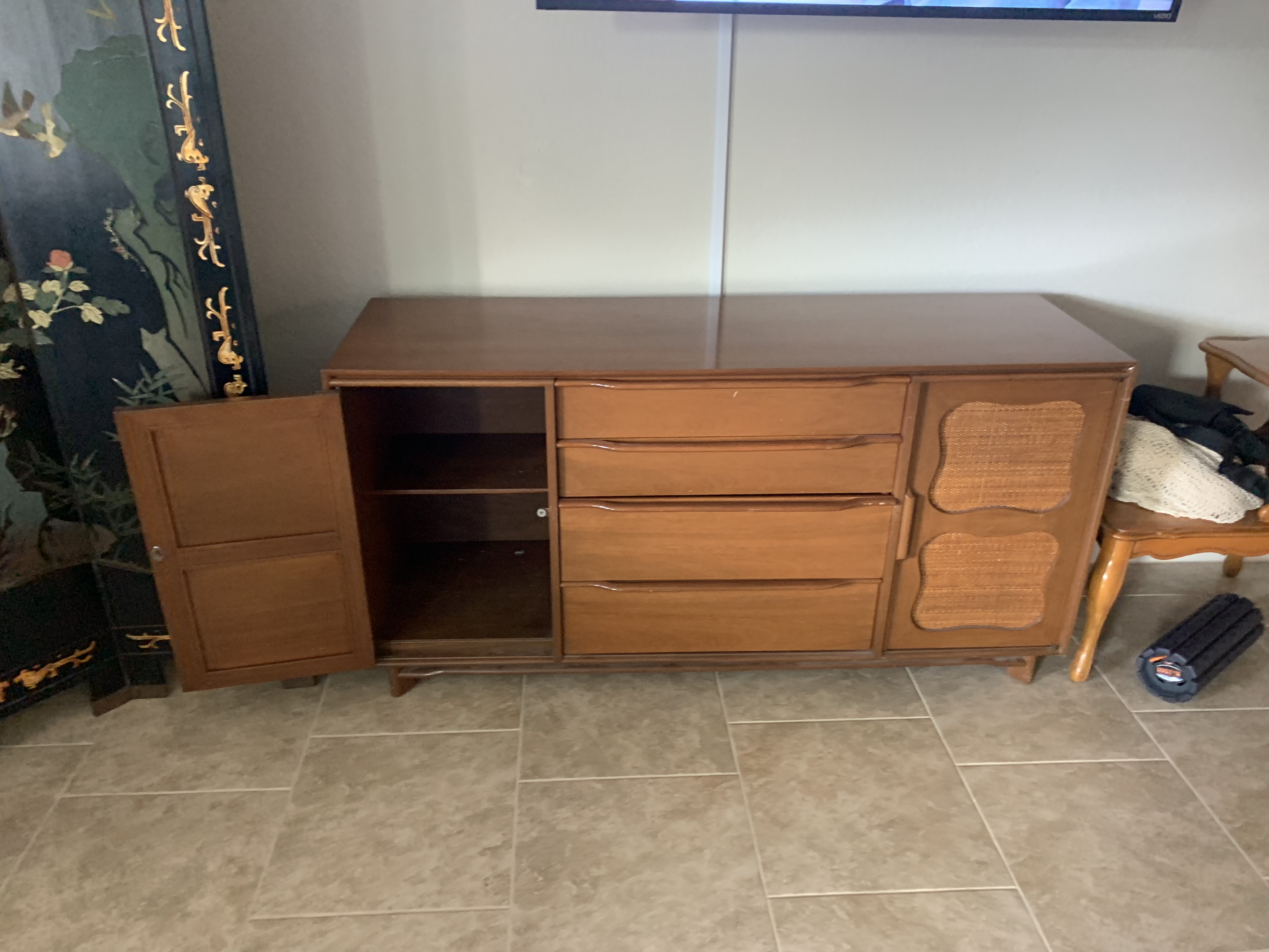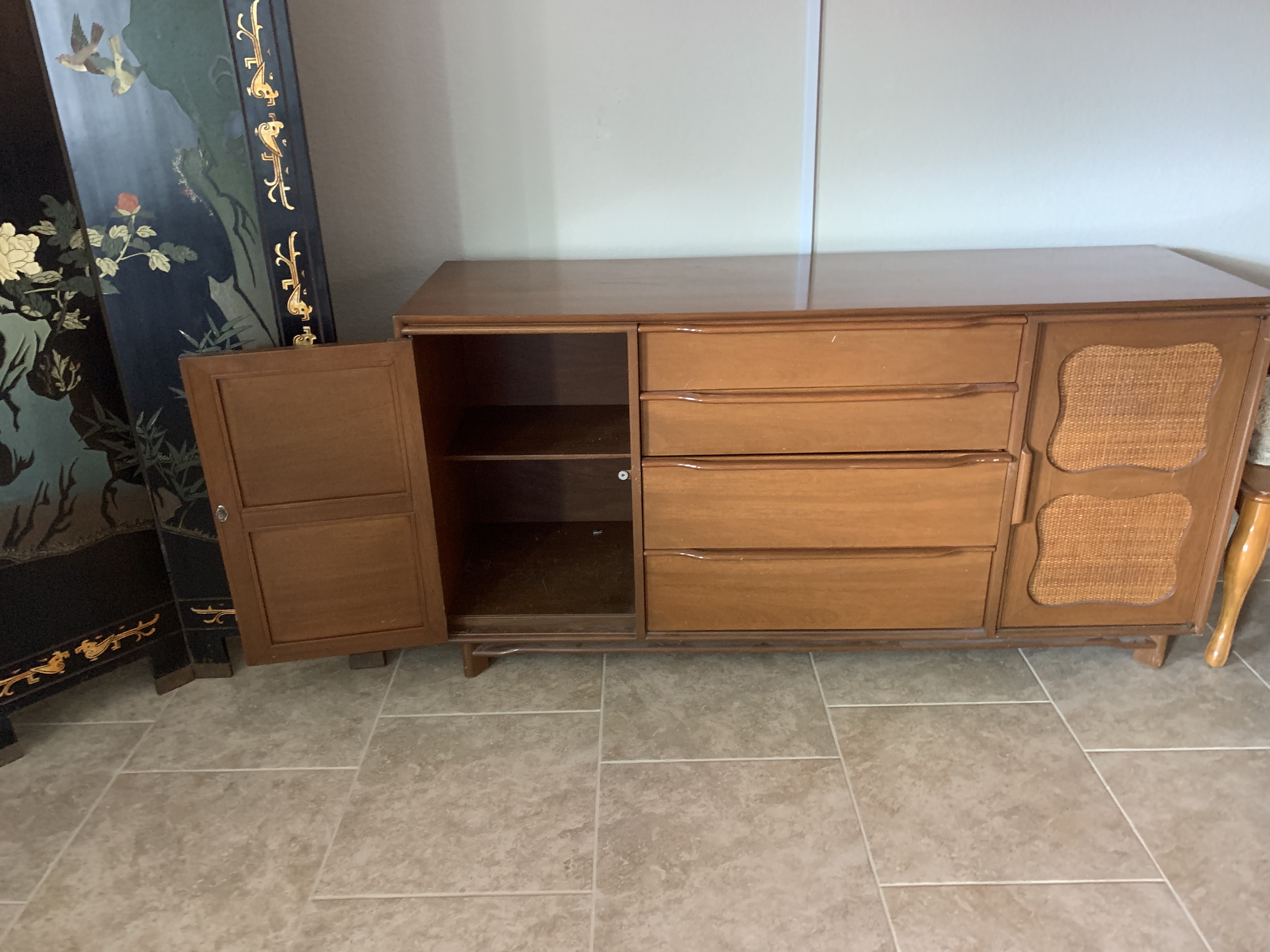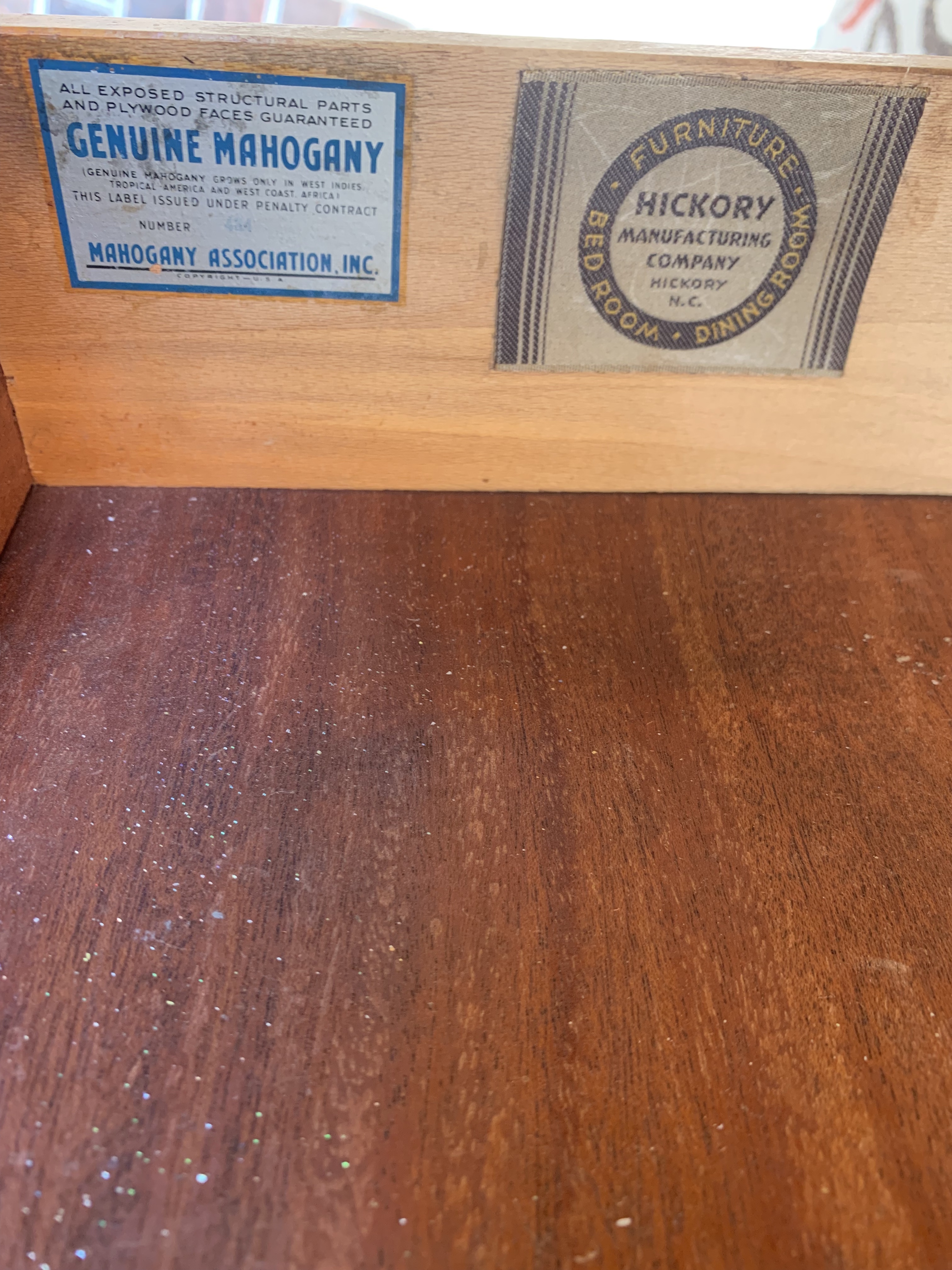 1940s purchased Mahagony credenza made my Hickory manufacturing. I have a matching China hutch and dining table-not pictured. The stain is not original- went through a fire and restained in 1970s.