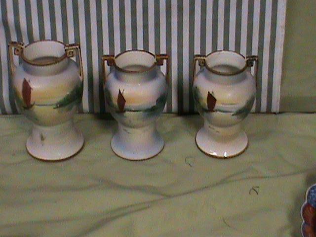 about four inches tall and the one larger one is about 5 inches tall. They are in excellent condition with no cracks no chips. Shipping will depend on the destination. Actual price for mail charged, no extra charge will be added. ask any questions you like I'd be happy to answer them chris