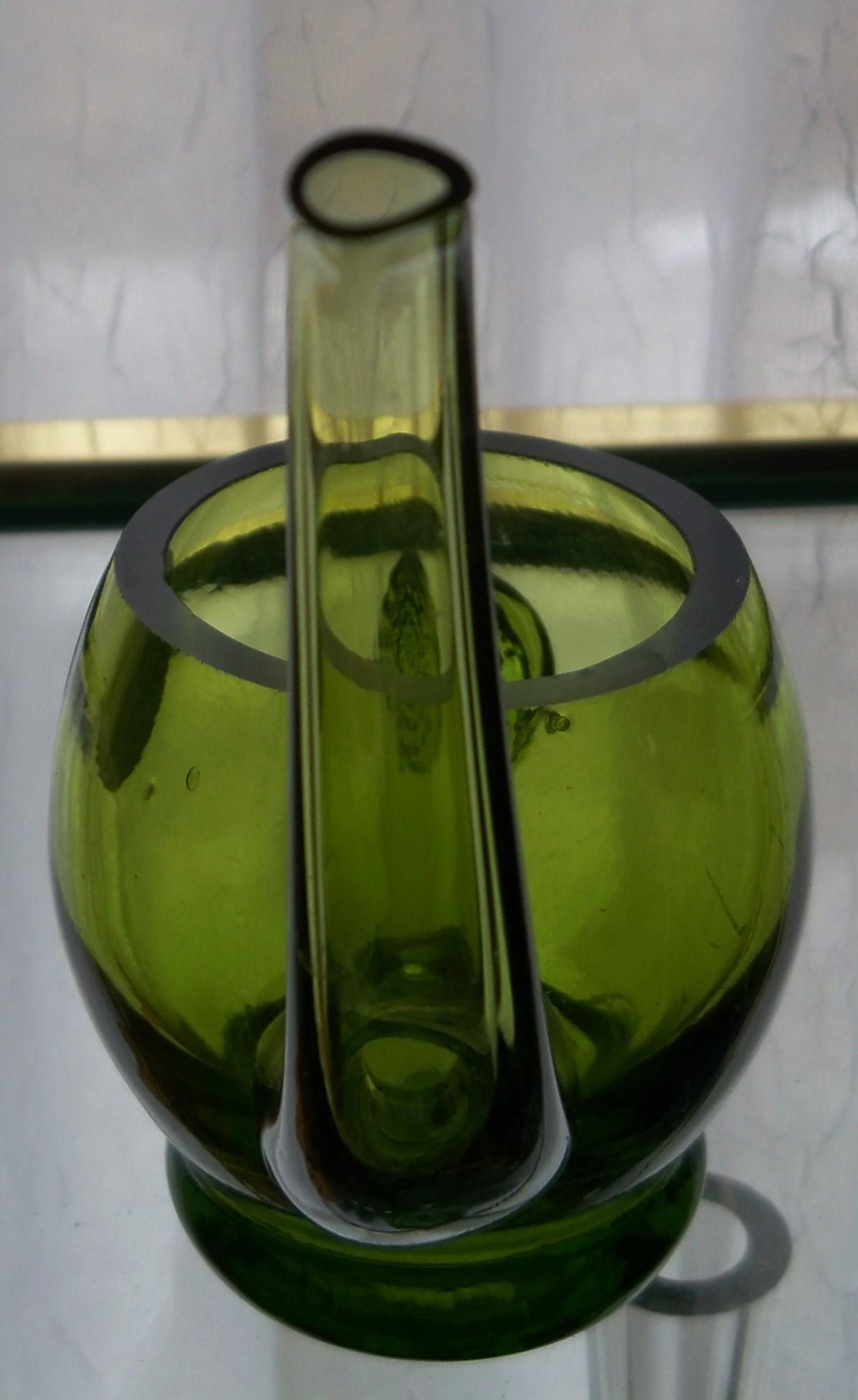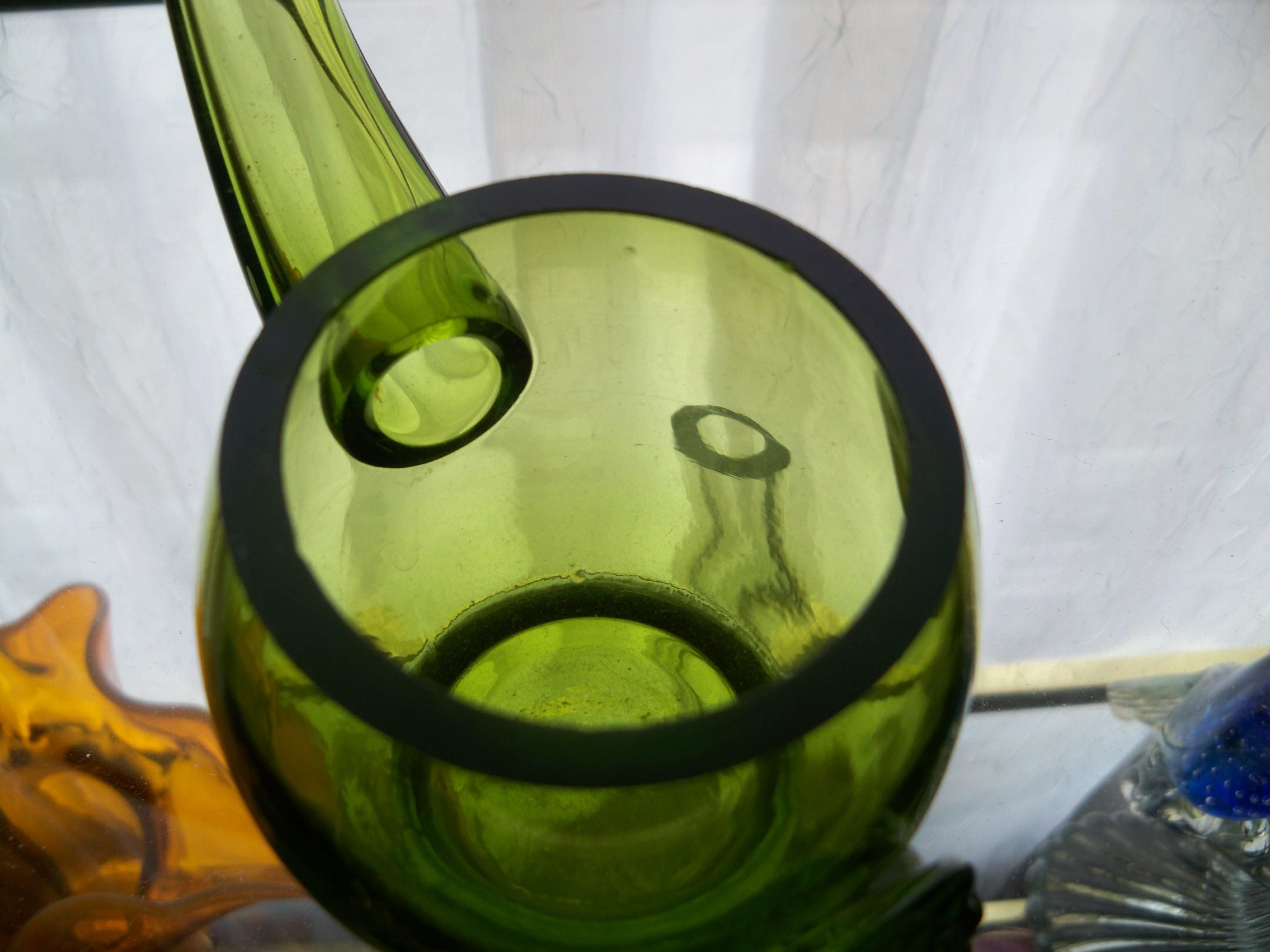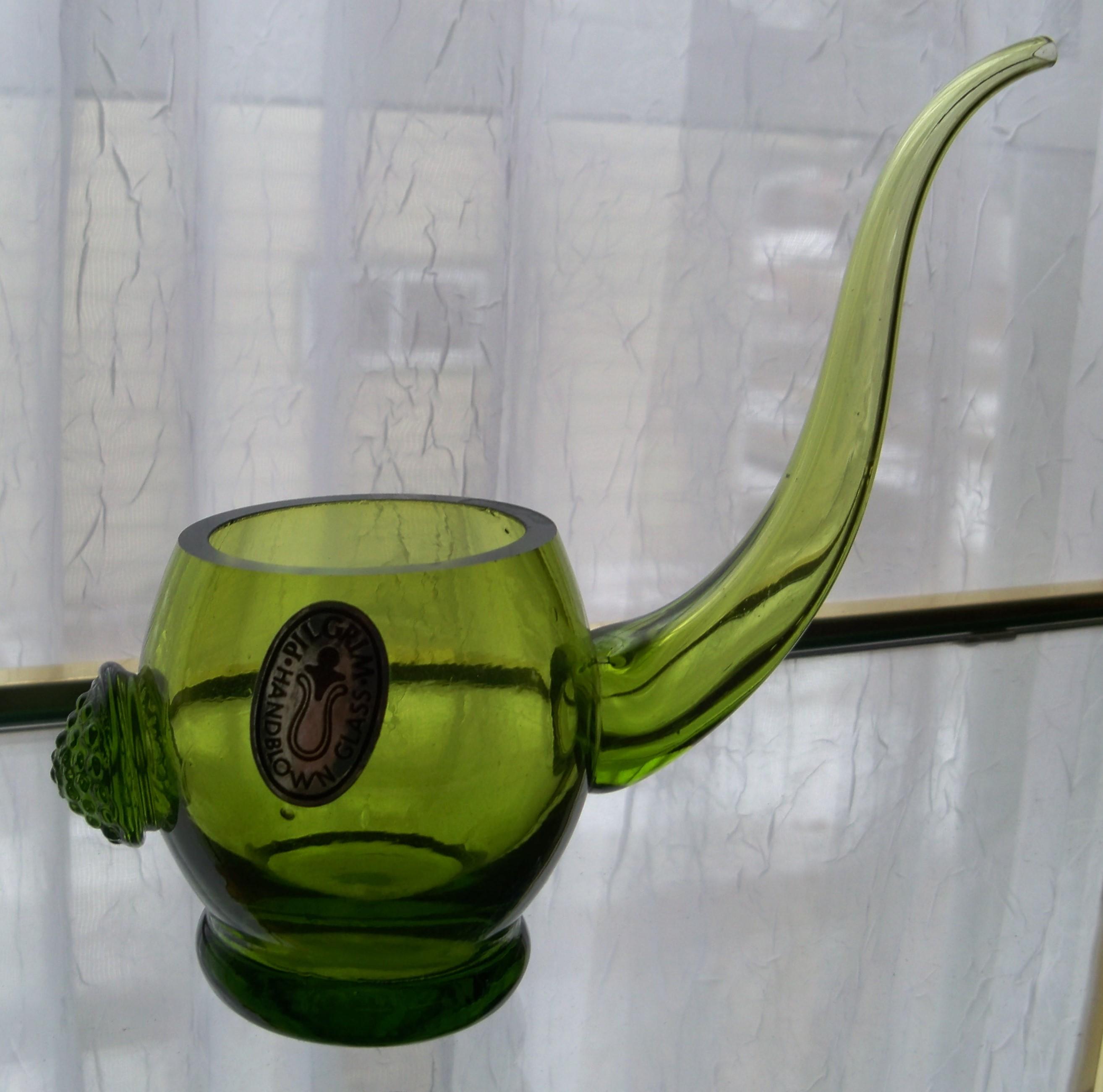 Pilgrim Glass watering spout. Was orignaly made so that you could water your African Violettes withought damaging your plant. They were produced in a very limited quantity for 1 year and production stopped due to breakage of the nozzle. They tried a second run but again encountered the same issues. To find one of these in any condition never mind with the original label in tact is like flipping yoru pillow over and finding a lump of gold...it does not happen. This piece is in excellent condition with the original factory label!!