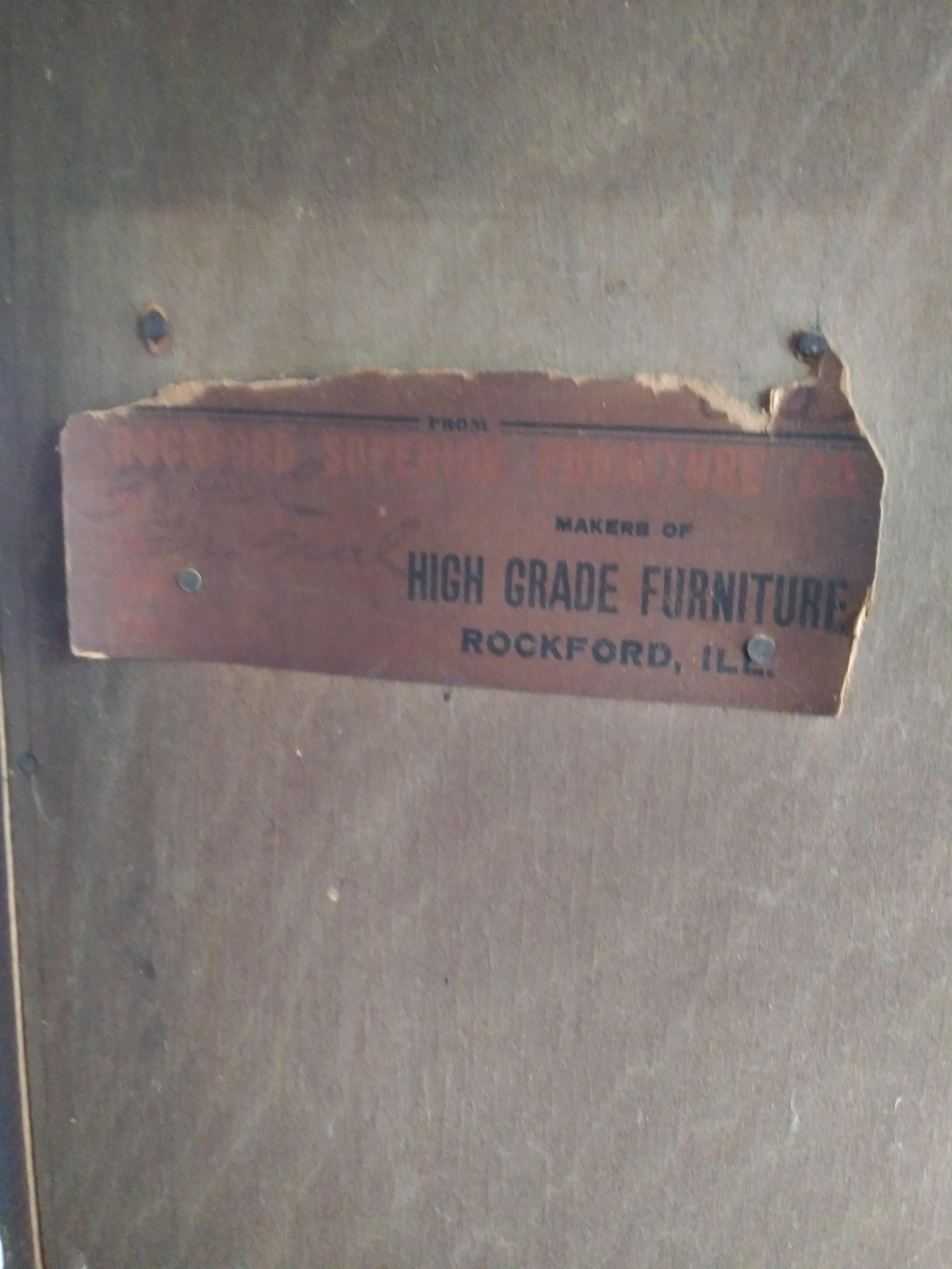 I dont know much about the piece except that it was made by Rockford superior furniture makers of high quality furniture (thats what the tag says) n it must be really old because i cant find it online anywhere