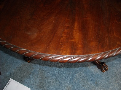 This table has been in my husband's family for several generations.I have photos It is standard height for dinning.It's diameter is 48".The table has very detailed feet(club).It is on a pedastal and lots of detail.Photos describe it better than I do.I will post more photos if someone is interested.The table is in excellent condition for it's age(LATE 1700s)