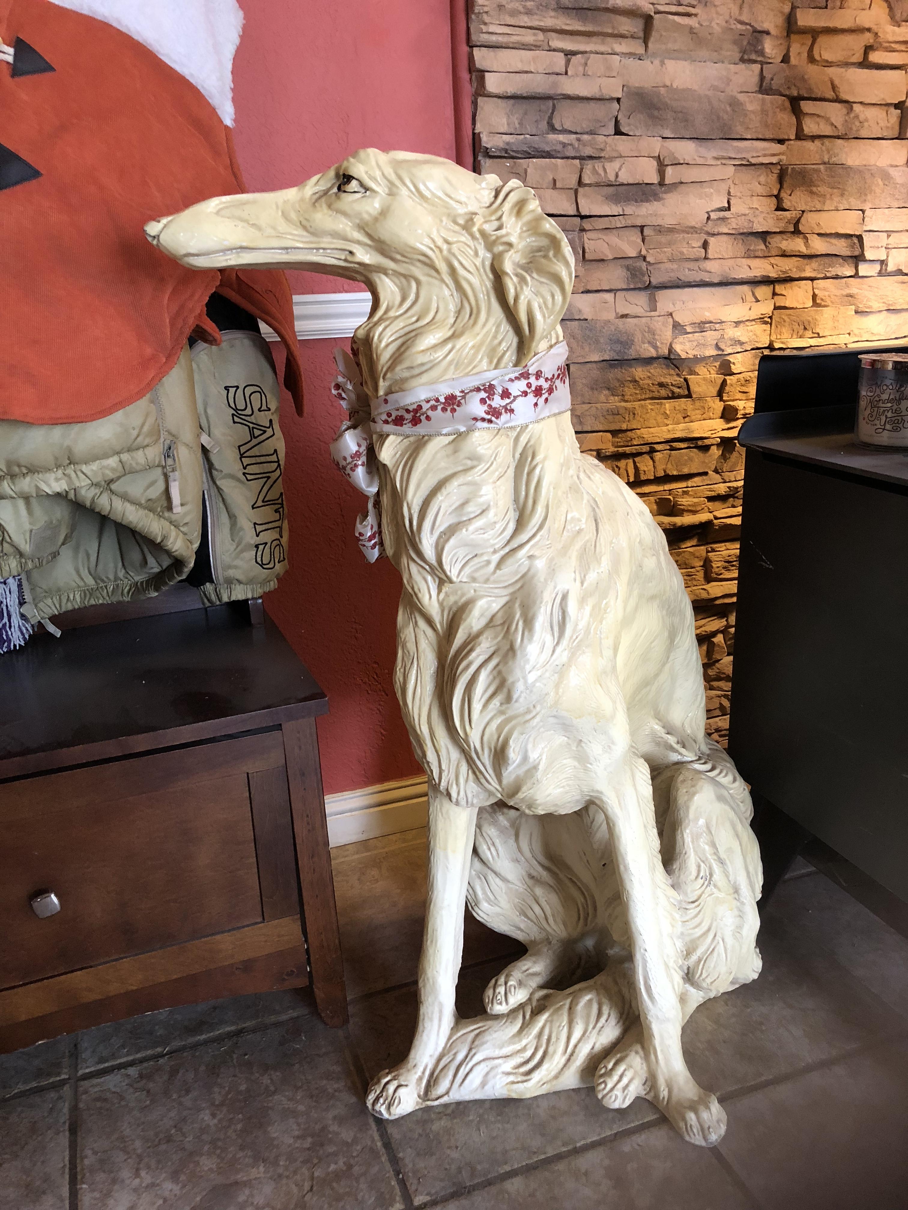 Gorgeous and rare life size Borzoi statue. Fully painted or glazed. I am unable to determine what he’s made of, but some form of ceramic or similar medium. Art Deco, possibly from the 1920’s.