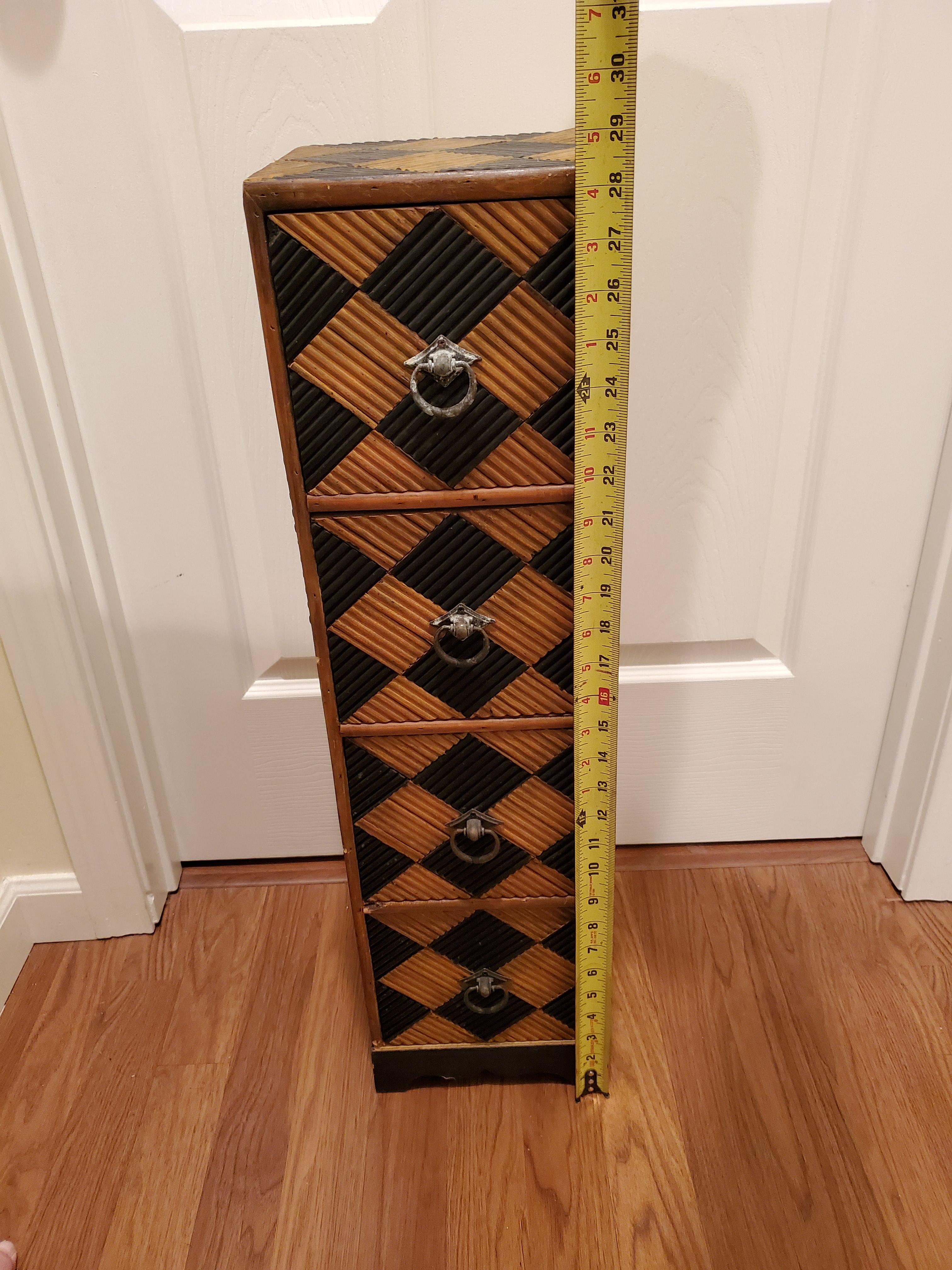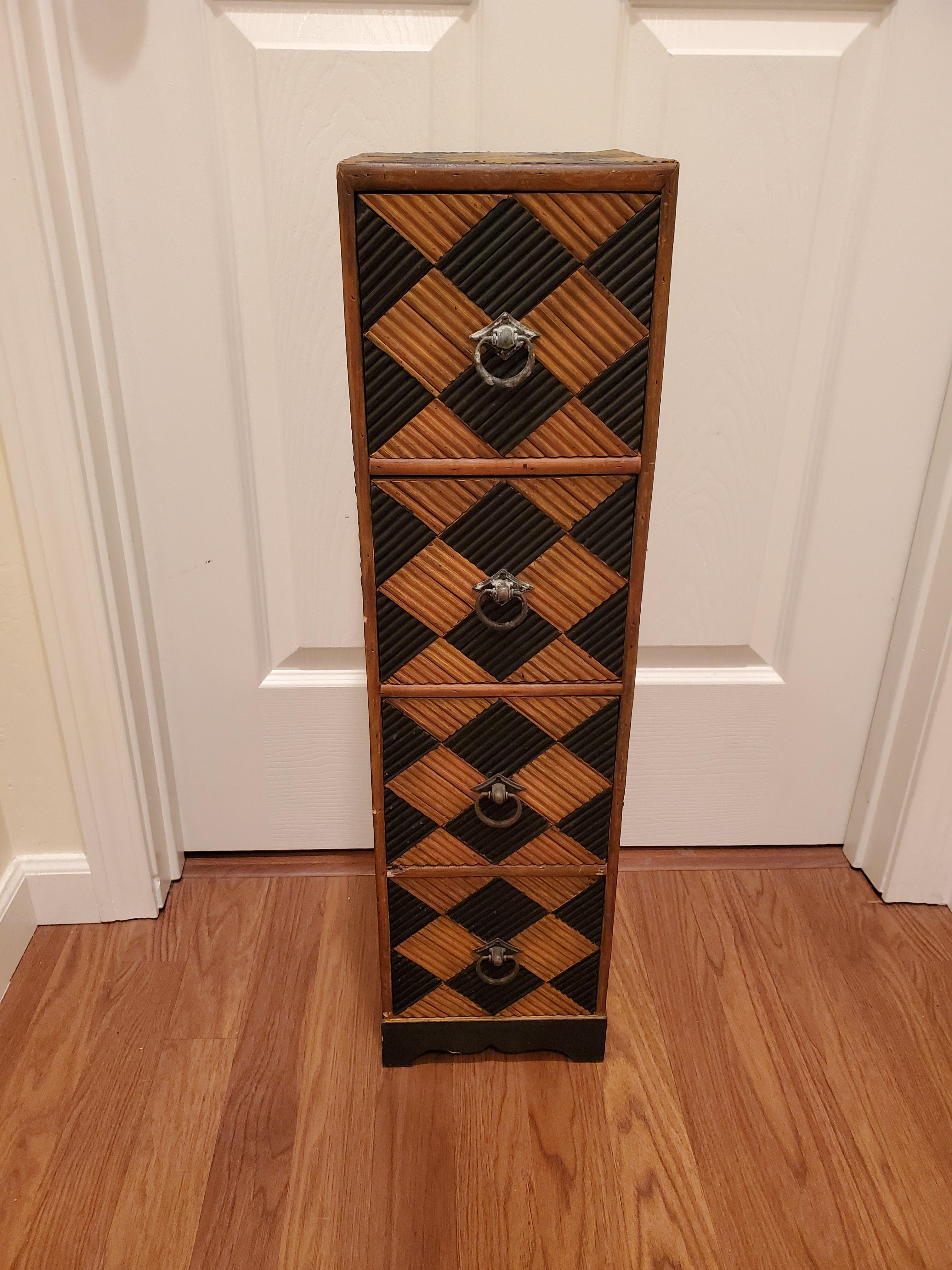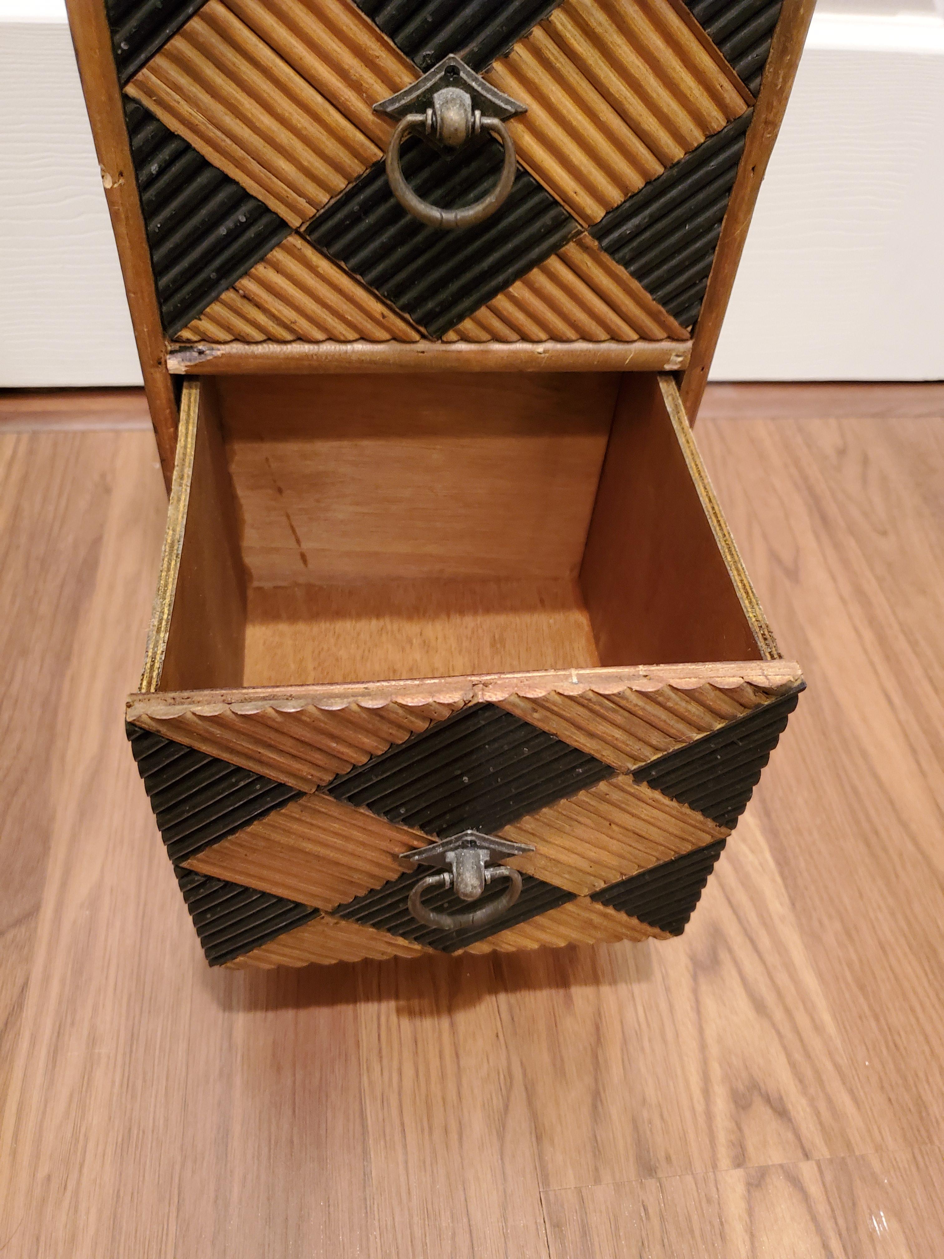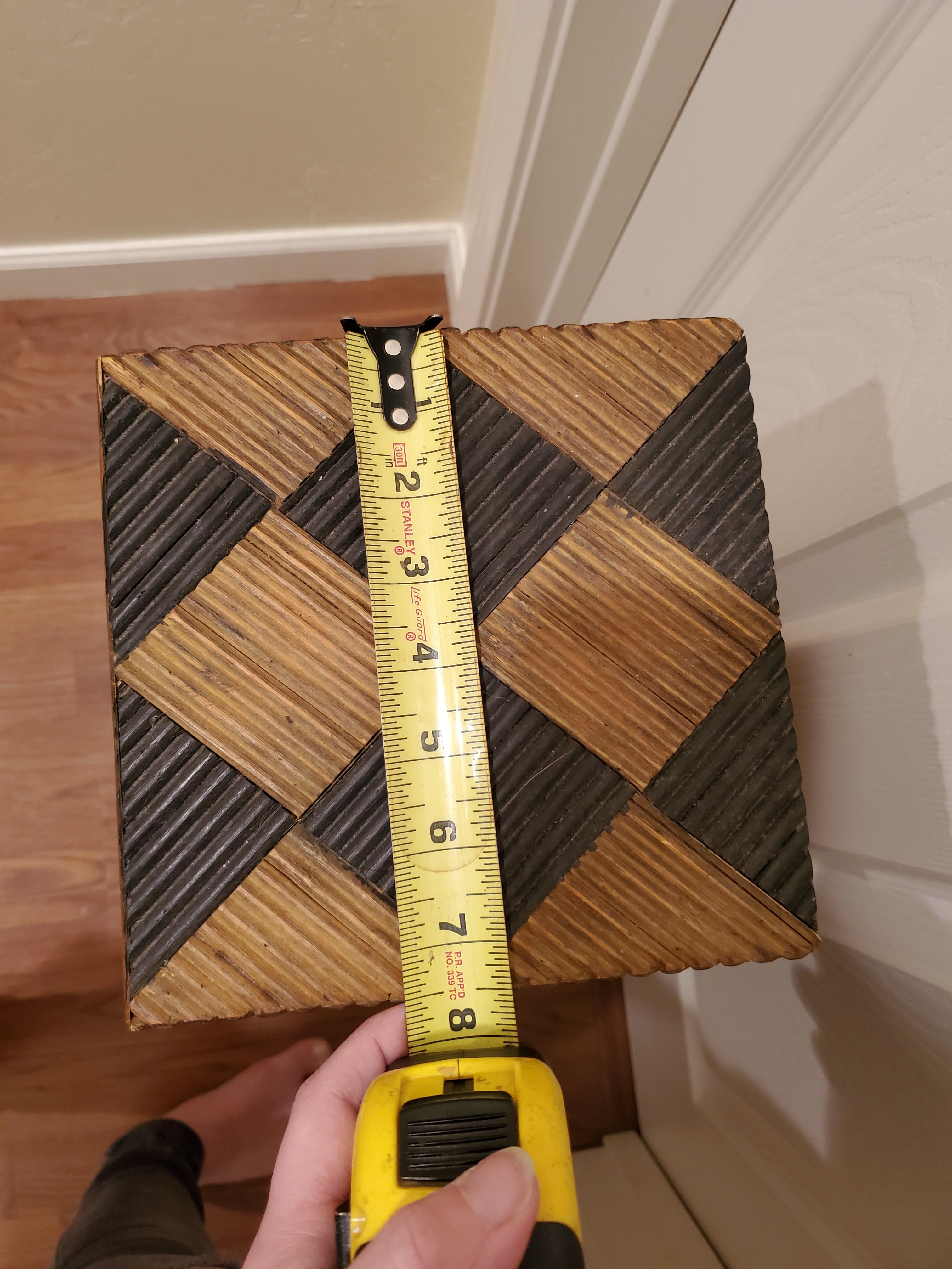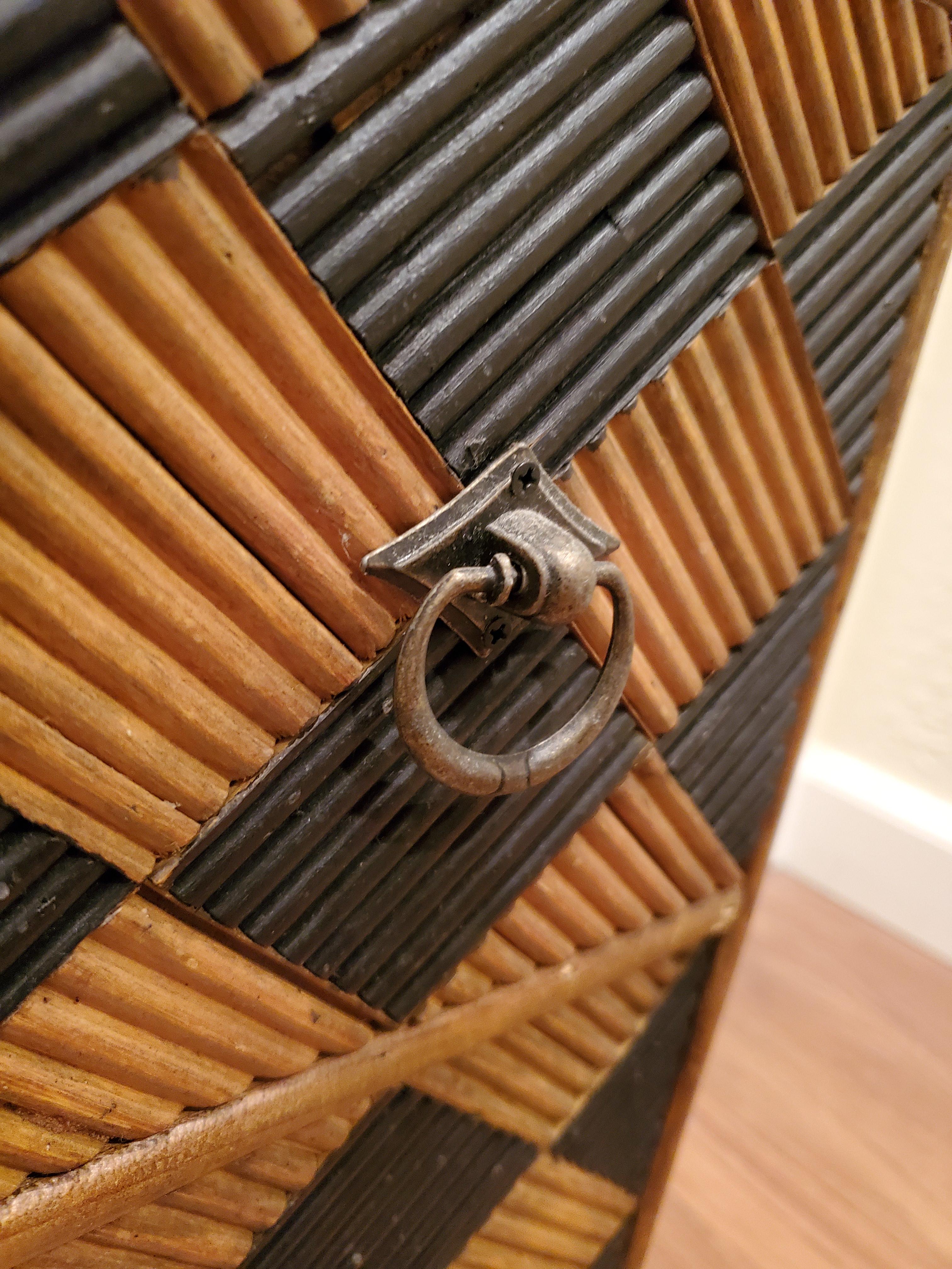 This vintage side table was recently purchased from an elderly womans garage sale. She was unable to provide any details, other than it's from the 40's. The metal hardware has patina, the entire piece is wood and pretty heavy.
