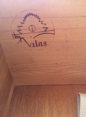 I recently purchased this piece and I would love more information about this. It has the "by Vilas" stamp in 3 of the 9 drawers. It also has some numbers stamped on the back 64-122 2084 2088 and another stamp I can't quite read. I am wondering about the value of this piece and the age. It is very heavy and very well made. I am also wondering what type of wood this is or if it is laminate. Really any details you can share with me would be wonderful. Not for sale.