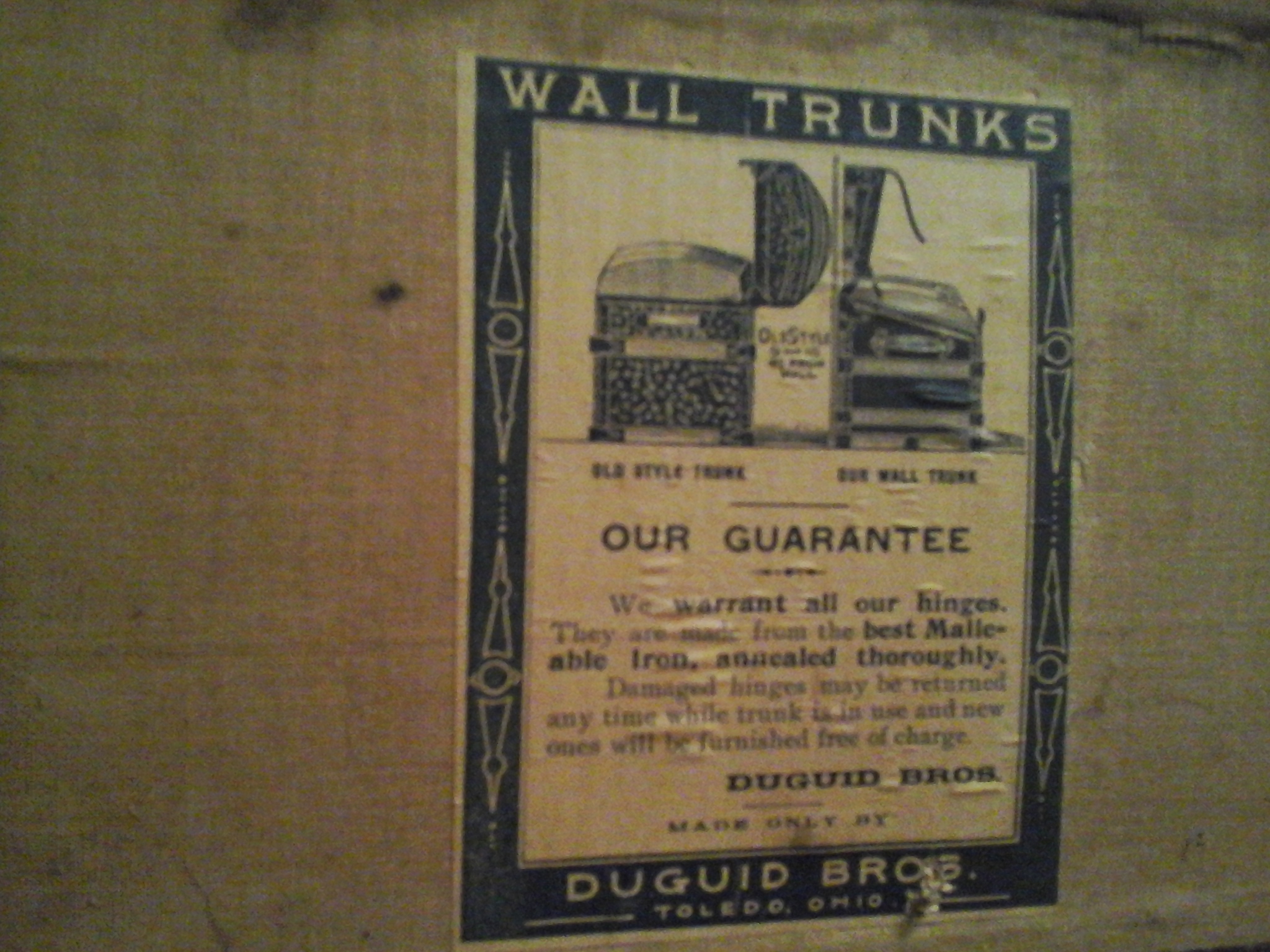 Description early to late 1800s duguid bros wall trunk, original condition with inserts Category American Furniture Price asked $1400.00 Is item sold? No Log in or register to post comments Photos